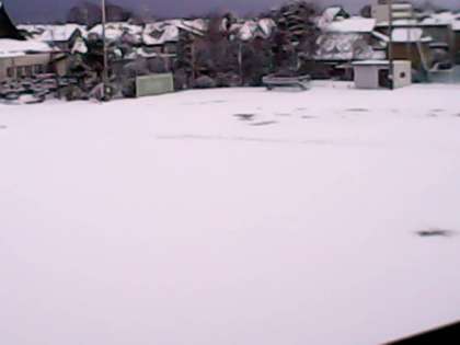 今日は、雪が降ってとても寒いです。グラウンドも雪で白くなっています。