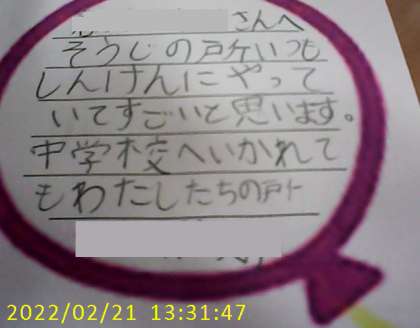 学級活動の時間に、みんなで6年生へのお手紙を書きました。6年生さんとの思い出はたくさんあるので、どの思い出について書こうか迷いました。 S.K