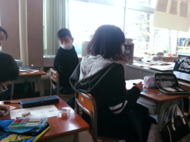 今日の2時間目に図工をしました。自分の名前の消しゴムハンコを作りました。トレーシングペーパーに自分の名前の字を書いてそれを消しゴムに移したり、彫刻刀やカッターで消しゴムを彫ったりしました。