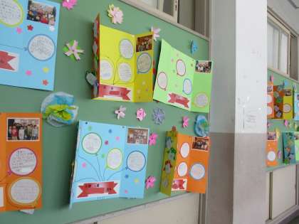 5年生は、6年生のために、教室の前にプレゼントの寄せ書きをはったり、かざりをつけたりしました。とくに犬のかざりがとてもかわいかったです。6年生に喜んでもらえるといいです。