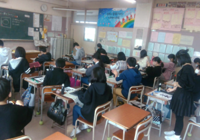 六年生は卒業に向けて、色紙に自分で選んだ漢字を書いています。今日は色紙に名前とはんこを押しました。みんな緊張しながらも上手にかけていました。