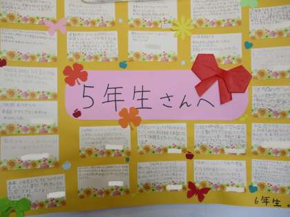 6年生さんは、おめでとう集会や1〜5年生からのプレゼントを見て、ぼくたち5年生に手紙を書いてくれました。とても素敵な文で、とても嬉しかったです。