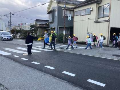 朝の登校の様子です。安全に気を付けながら、しっかりと一列歩行をしていきます。見守り隊や地域の交通当番の方にしっかりと挨拶する、天瀬っ子です。