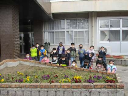 明日は、卒業式。1年生は、家庭でお祝いをしながら過ごします。そこで、卒業式に出られないかわりに、できることをしようと、正面玄関前の花壇の草むしりをしました。「ここで、記念写真を撮ってくれたらいいな」「6年生さんのおかげで、小学校生活が楽しくなったな」「たくさん遊んでもらったな」など、と思い出しながら、一生懸命に活動しました。