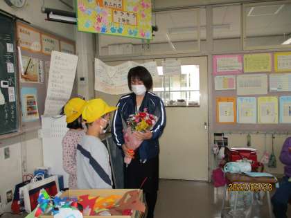 最後は、感謝の気持ちをこめて花束やみんなで書いたお手紙を渡しました。