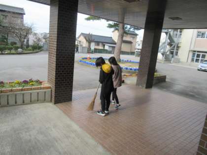 進んで正面玄関の掃除をしてくれています・・・ありがとう!