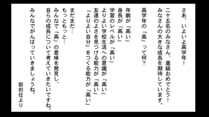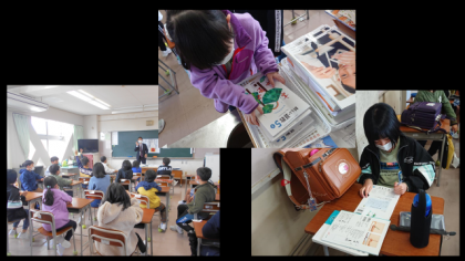 4月6日、始業式。「高学年」という立ち位置を確認したり、今年度の教科書をチェックしたりしました。気持ちを新たに、「前向き」スタートでがんばります!