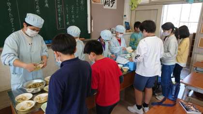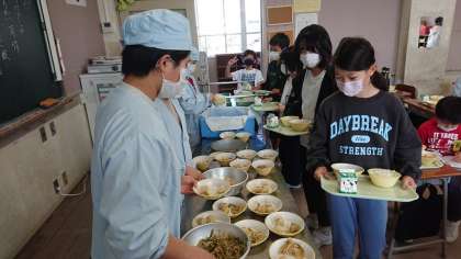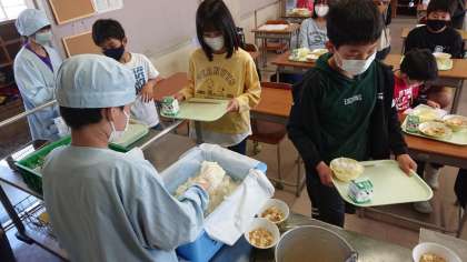 新学期、給食が始まって3日目。静かに落ち着いて準備する姿がすばらしいです。