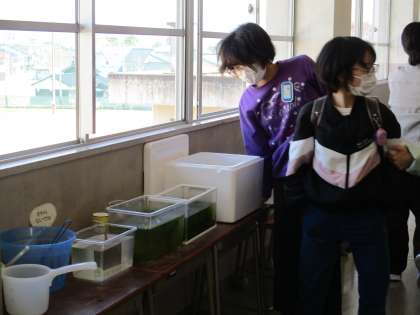 5年生のときから理科の学習で育てていたメダカです。引き続き6年生でも育てていきます。合間の時間にみんなでのぞいています。メダカもとても元気です。そろそろ温かくなってくるので、赤ちゃんメダカが生まれることも期待ですね。