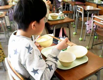 ぼくたちは、今日もおいしく給食をいただいてます。今日は、麻婆豆腐がおいしかったです。明日の給食も楽しみです。