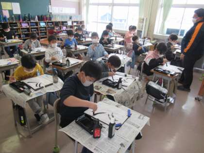 書写で毛筆(4年生)