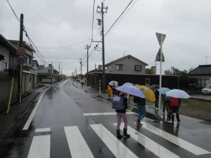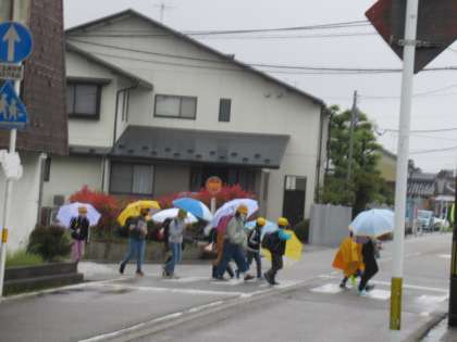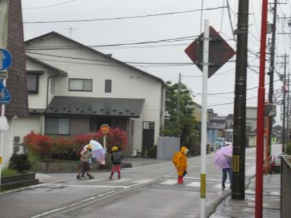 雨の中、がんばって登校しています・・・