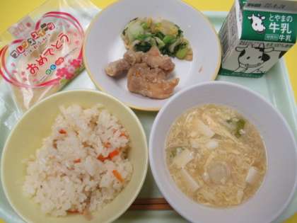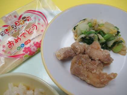 ・ちらし寿司   ・牛乳   ・鶏肉のから揚げ