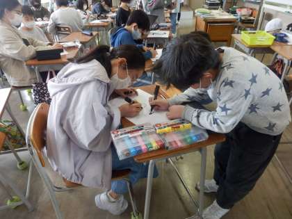 6年生 いろいろな準備に大忙し☆ 公開日 2022/04/18 更新日 2022/04/18 6年生 運動会や委員会、入学おめでとう集会など、たくさんの行事の準備に大忙しの6年生です。今日は、今年1年のファミリー活動がスムーズに進むためのアイテムを制作中です。