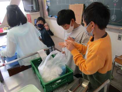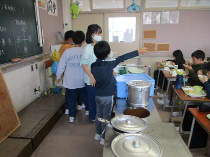 みんなが美味しく給食をいただけるのは、給食の準備や片付けをしてくれている人がいるからですね。感謝です。