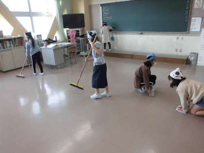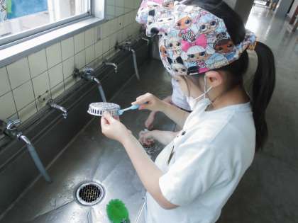 歯ブラシを使って排水溝の汚れを落とす姿もあります。工夫がすてきです。
