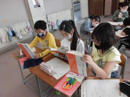 グループで音読したり、登場人物の気持ちを考えたりしています。