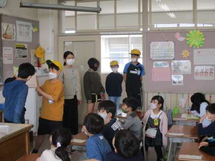 毎日、準備を手伝ってくれたり、楽しいゲームを考えてくれたりと、1年生のためにがんばってくれる6年生です。