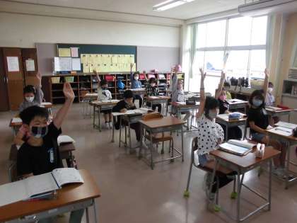 ピンッと挙げた手に、やる気を感じます。