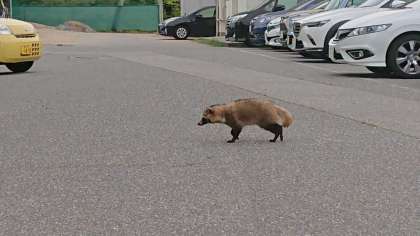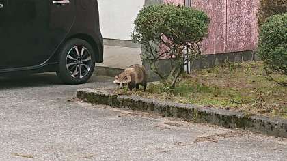 朝、ぼくは環境委員会の仕事で掃除をしていました。すると、天瀬の池の近くからタヌキが出てきました。タヌキは、体が少し小さめで、かわいらしかったです。