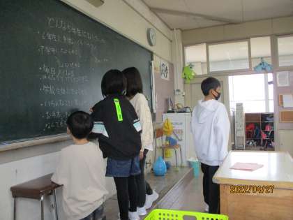 クラスのみんなと「どんな5年生になりたいか」を話し合いました。わたしは、いっぱい活躍できる5年生になりたいです。みんなで、いいクラスを目指していきます。