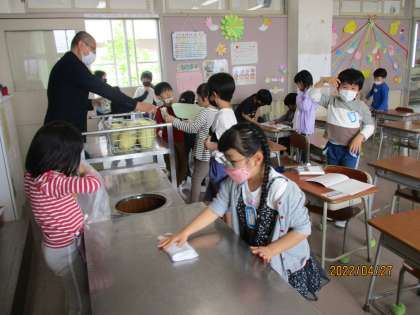 給食当番さんだけでなく、片付け係の子供たちも最後まで丁寧に仕事をがんばりました。