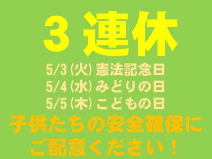 連休期間中は学校が閉庁となるため、お子さんが