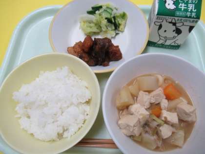 ・ごはん ・牛乳 ・豚肉とレバーの揚げからめ