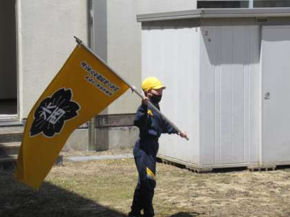 黙々と団旗を振る練習も・・・