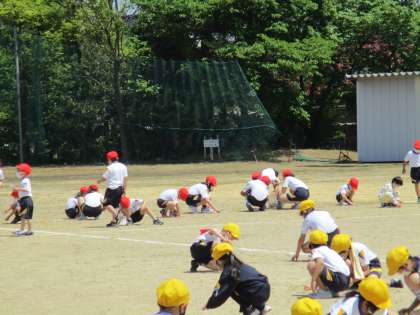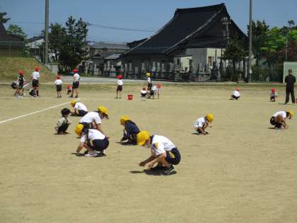 応援練習のあとは、みんなで石拾いや草むしりをしました。運動会に向けて、グラウンドの環境もみんなで整えました。