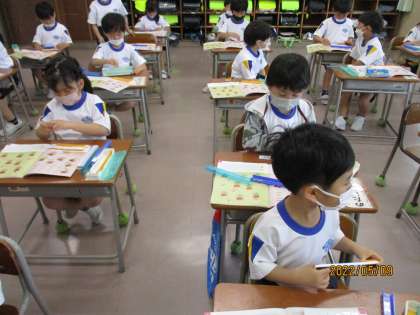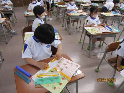 算数ブロックを並べながら学習しました。