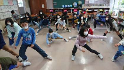 朝の時間に「天瀬っ子ソーラン」の練習をしました。動きを思い出しながら、練習しています。