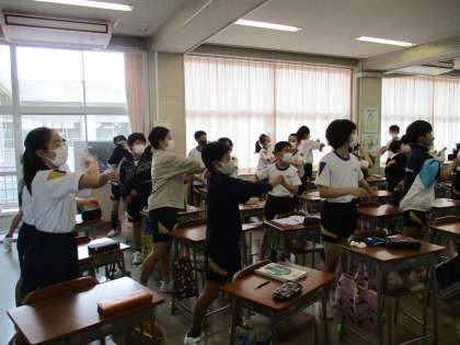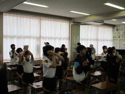 隙間の時間を使ってダンスの練習です。みんなノリノリ、笑顔がいっぱいです。