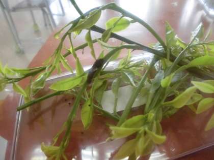 理科で学習する、アゲハのよう虫をM.Oさんがもってきてくれました。よう虫は手や足が小さくてかわいかったです。1ぴきじゃなく、みんなも見られるほどいっぱいよう虫がいます。