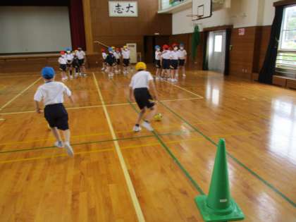 ボールを運んだり、動物になりきったり、変装したり、「怪盗あませ」になりきる特訓中です。運動会をお楽しみに!