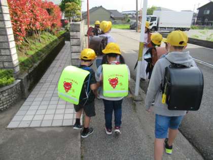 転んで泣いている1年生を支えながら登校しています・・・
