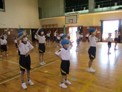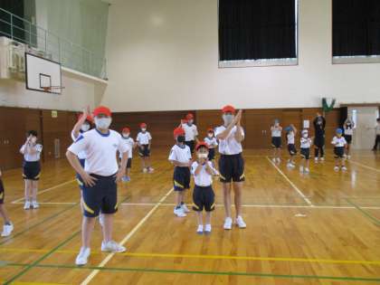 ノリノリでダンスしました(1年生) 公開日 2022/05/12 更新日 2022/05/12 1年生 5・6年生に教えてもらいながら、ダンスの練習をしました。 音楽にのって、楽しそうに踊っていました。
