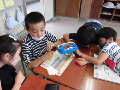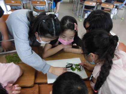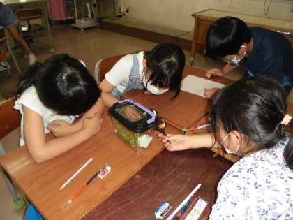 3年生教室に仲間入りした、アゲハのたまごとよう虫です。興味津々です。