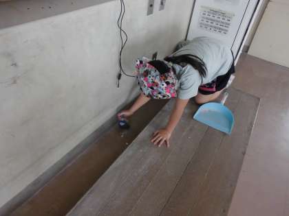 マス目に沿って、隅まで丁寧に掃除しています。すてきです。
