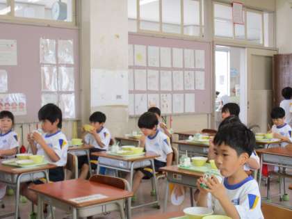 嫌いな食べ物に挑戦したり、昨日より多く食べたりした友達の成長を一緒に喜びながら、給食時間を過ごしています。