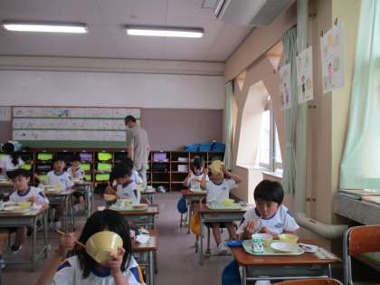 運動会の練習で思いっきり体を動かしているからか、一生懸命給食を食べていました。