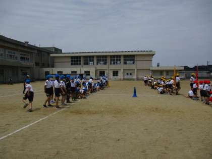 全校で綱引きの練習です。昨年度までは、上学年・下学年にわかれていた綱引きですが、今年度は1〜6年生みんなで行われます。みんなの力を合わせて頑張りましょう!