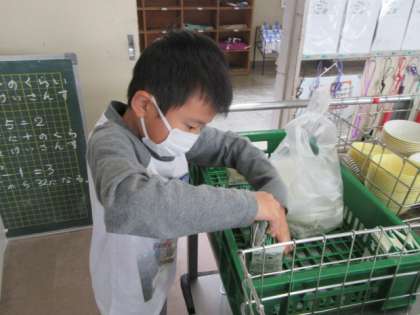 給食の片付けや準備にも一生懸命に取り組みます。