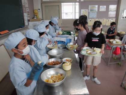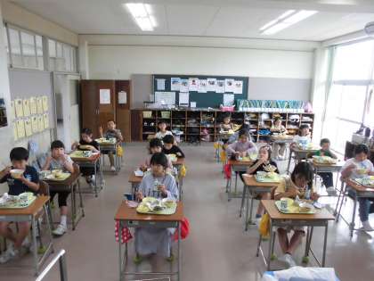 予行をがんばった子供たち。お腹ぺこぺこです。もりもり食べます。