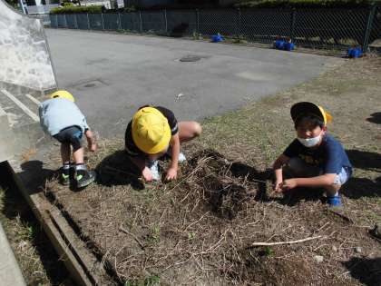 鉢に咲いていたチューリップの球根を掘り上げ、花壇の草むしりもしました。