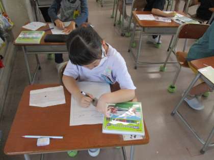 触ってみた感じやにおい、色をよく観察して楽しそうに活動していました。