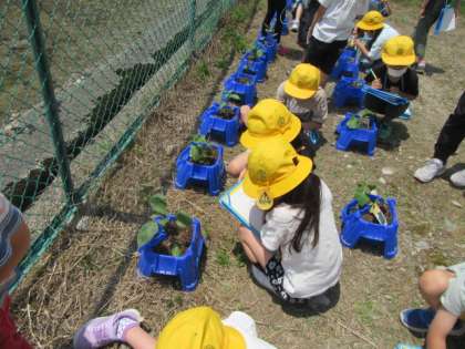野菜たちのママ・パパになろう(2年生) 公開日 2022/05/20 更新日 2022/05/20 2年生 「茎が折れたらどうしよう。」と自分たちで考えて、木で補強をしている子供たち。がんばっていました。
