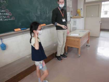 ジェスチャーを付けながら、自分の様子を伝えています。