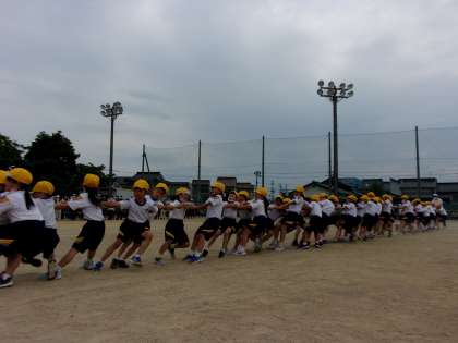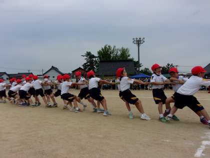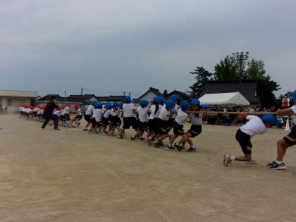 綱引き。団の仲間と力を合わせて。