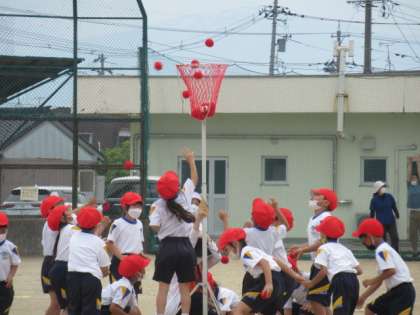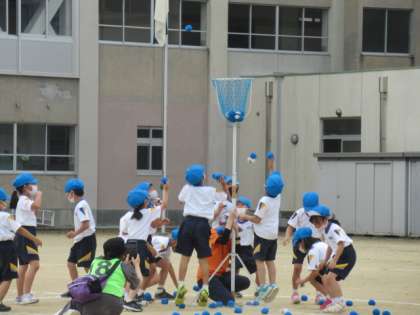 ダンスを踊ったり、玉を入れたりしてがんばっています!